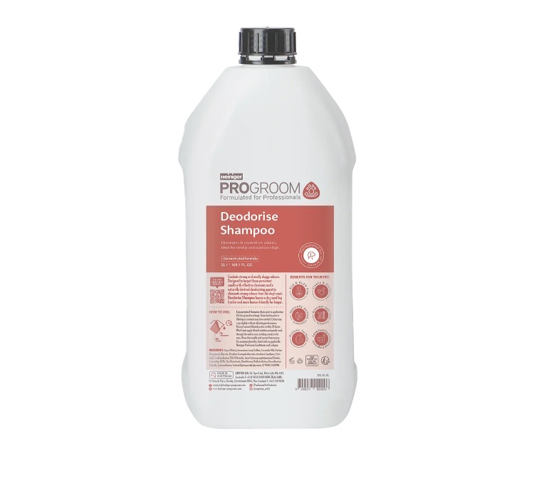 ProGroom Deodorise šampon 5 litara. Šampon dezodorant formulisan za neutralizaciju i uklanjanje neugodnih mirisa iz pseće dlake.